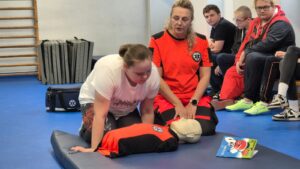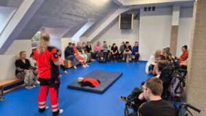 Spotkanie odbyło się w ciepłej, przyjaznej atmosferze i spotkało się z dużym zainteresowaniem uczniów. Dzieci mogły nie tylko posłuchać o zasadach postępowania w nagłych wypadkach, ale także aktywnie uczestniczyć w ćwiczeniach praktycznych, ucząc się m.in. pozycji bocznej bezpiecznej oraz podstaw resuscytacji.